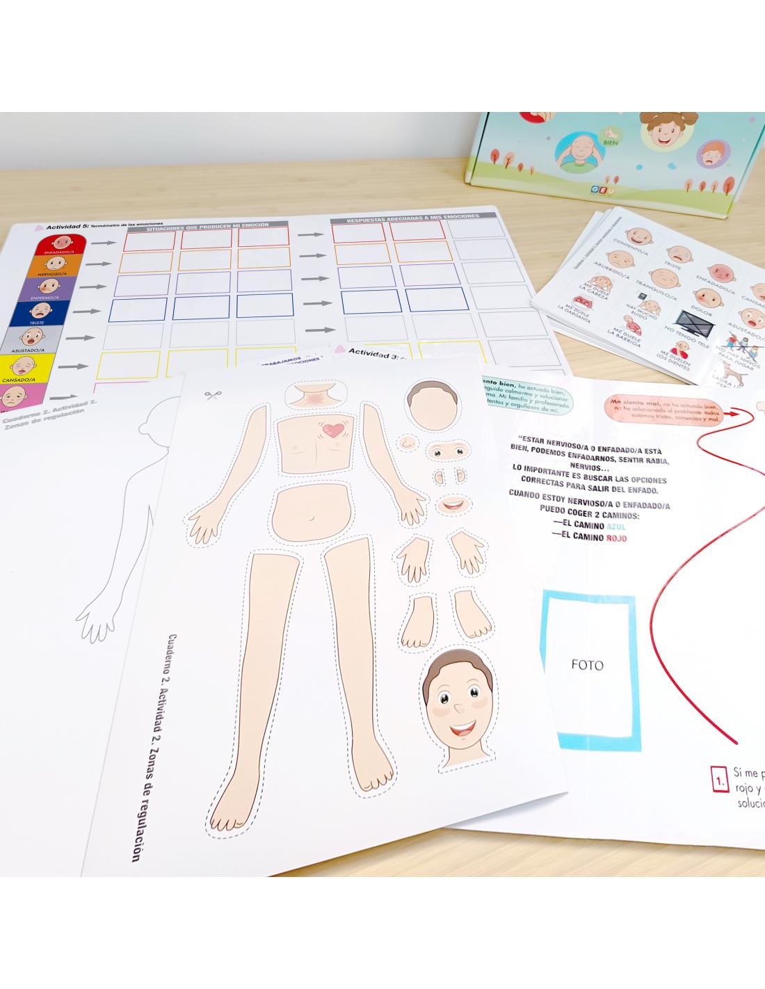 El material está dividido en dos cuadernos. Se recomienda empezar por el primero "Las emociones tienen nombre” e ir avanzando durante el recorrido de actividades. Una vez completado el cuaderno 1, seguiremos con el cuaderno 2 “Aprendo a gestionar mi conducta”. Hay actividades que se trabajan dentro de los cuadernos y algunas de ellas ofrecen paneles en A3, panel imantado y plantillas que aumentan las posibilidades para trabajar el contenido de manera más dinámica.