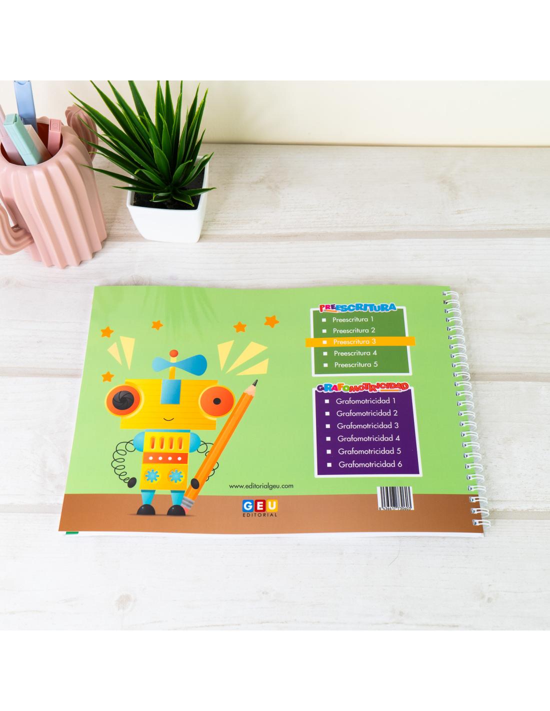 El cuaderno de preescritura 3, parte de nuestra increíble colección de 5 cuadernos de Preescritura de Editorial GEU, está diseñado para que los pequeños continúen desarrollando habilidades clave para la escritura de manera efectiva y divertida. 🌟✏️
