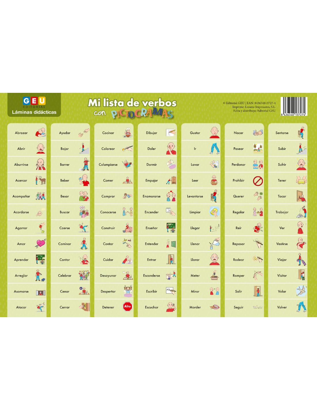 Mi lista de verbos con pictogramas